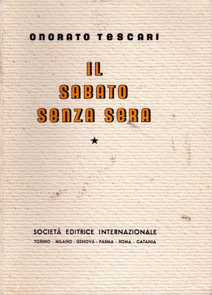 Il sabato senza sera, prima edizione 1938, pp. 267, formato 13 x 18.<BR>Copertina morbida color crema con titoli in nero e giallo al piatto anteriore e in nero sul dorso. <BR>Condizioni molto buone. <BR>