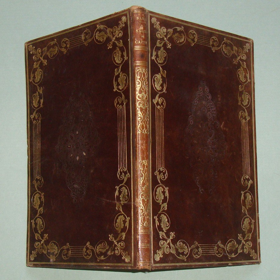 Napoli, 1839. In 8vo (cm.20x13); pp.6n.nn.,84. Antiporta illustrata. Legatura coeva in vitello marrone, fregi romantici in oro ed a secco inquadrano i piatti.