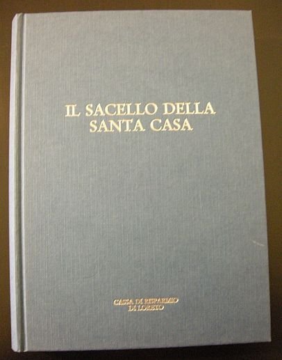 In 8? (cm 24,7), Leg. edit. tutta tela, pagg.364-(4) con numerose ill. b.n. e a colori n.t. anche a doppia pag., sguardie ill. in verde, contributi di: Paolo Busdraghi, Domenico Germani, Mario Luni, Stefano Papetti, Sergio Vannucci, Antonio Veggiani, ottimo es stampato su carta "gardamatt brillante" delle Cartiere Garda. Prima e unica ed. Volume realizzato dalla Cassa di Risparmio di Loreto; nella prima parte sono pubblicate le risultanze del restauro degli affreschi del sacello della Santa Casa e alcuni saggi sulle fasi edilizie e sui materiali lapidei della cappella della Santa Casa, nella seconda parte una sintesi della storia devozionale.
