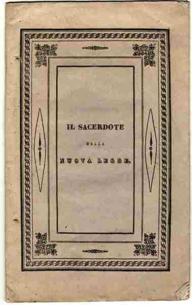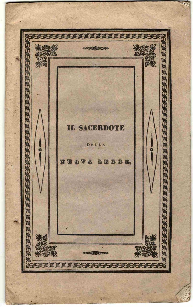 Il sacerdote della nuova legge. Capitolo di F. S. per l'assunzione al sacerdozio del diacono napoletano Giovanni D'Alessandria, avvenuta il d^ 24 maggio dell'anno 1834