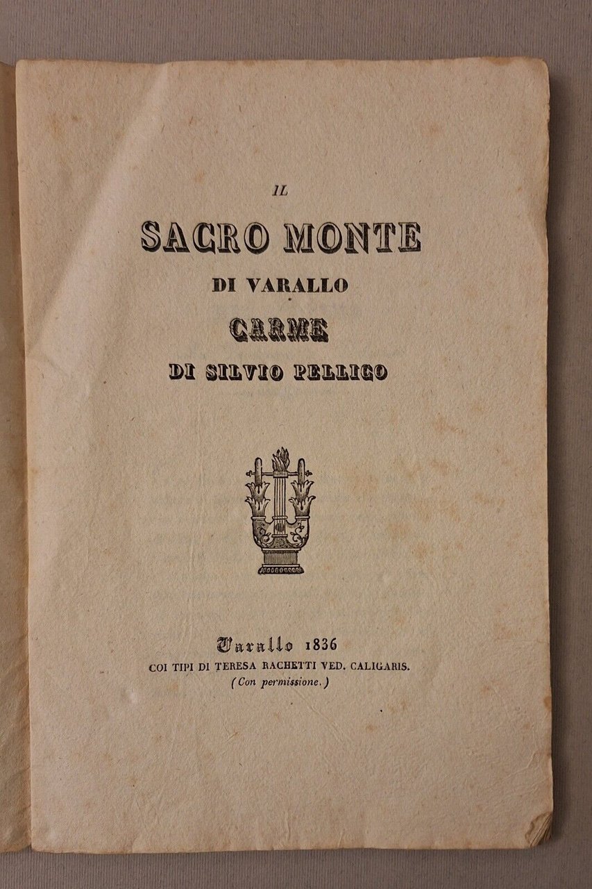 IL SACRO MONTE DI VARALLO CARME DI SILVIO PELLICO T. BACHETTI VARALLO 1836In 8° , brossura editoriale, copertina illustrata.In ottime condizioni, lievissimi segni alla copertina.