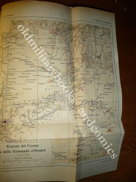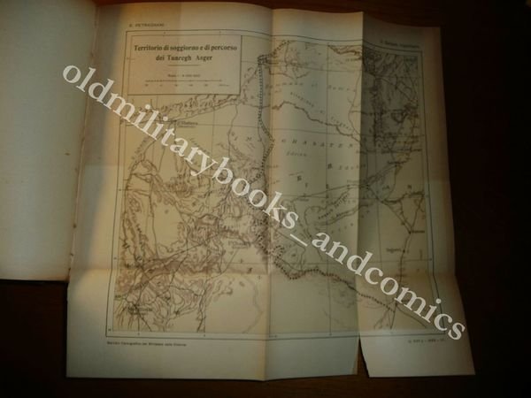 DESCRIZIONE: Collezione di Opere e Monografie a cura del Ministero delle Colonie, Società Arti Grafiche Roma 1928, vol. con bella legatura in mz. tela con tit. in oro al dorso, pp. XXII+516 con centinia di foto b/n f.t., grafici, tabelle e quattro carte, più volte rip. in 8°. Si tratta della terza monografia curata del Ministero delle Colonie in cui troviamo la descrizione del Fezzan e delle zone Sahariane, usi, costumi, storia. Le carte illustrano la regione del Fezzan e della Hammada el Homra,l'itinerario Sirte - Murzuch,il territorio dei Tuaregh Asger, le regioni del Tibesti, Cauar, Ciad. Un capitolo dedicato ai capi e notabili del Sahara tripolitano. La prima parte e' dedicata allo studio geografico, storico, etnografico del Fezzan (i Berberi, i negri, i Tuaregh del Sahara Tripolitano; donne mussulmane e donne sahariane in particolare; i Tibesti e i Tibbu). Molto interessanti i capitoli dedicati agli abitanti del Fezzan, alle donne mussulmane, ai Tuaregh. La seconda parte del libro contiene la descrizione dei 54 mesi di prigionia dell'A. (a poche settimane dal suo arrivo a Sebha), dalla fine del 1914 alla primavera del 1919, prigioniero di guerra degli arabo-senussiti. Indice completo in foto. CONDIZIONI: Buone, il vol. è stato oggetto di studio del suo antico proprietario, che ha lasciato alcune scritte a matita, sottolineature in lapis rosso, e segni sulle carte, comunque il tutto è quantomai accettabile. PESO / WEIGHT: 1414 gr. without package