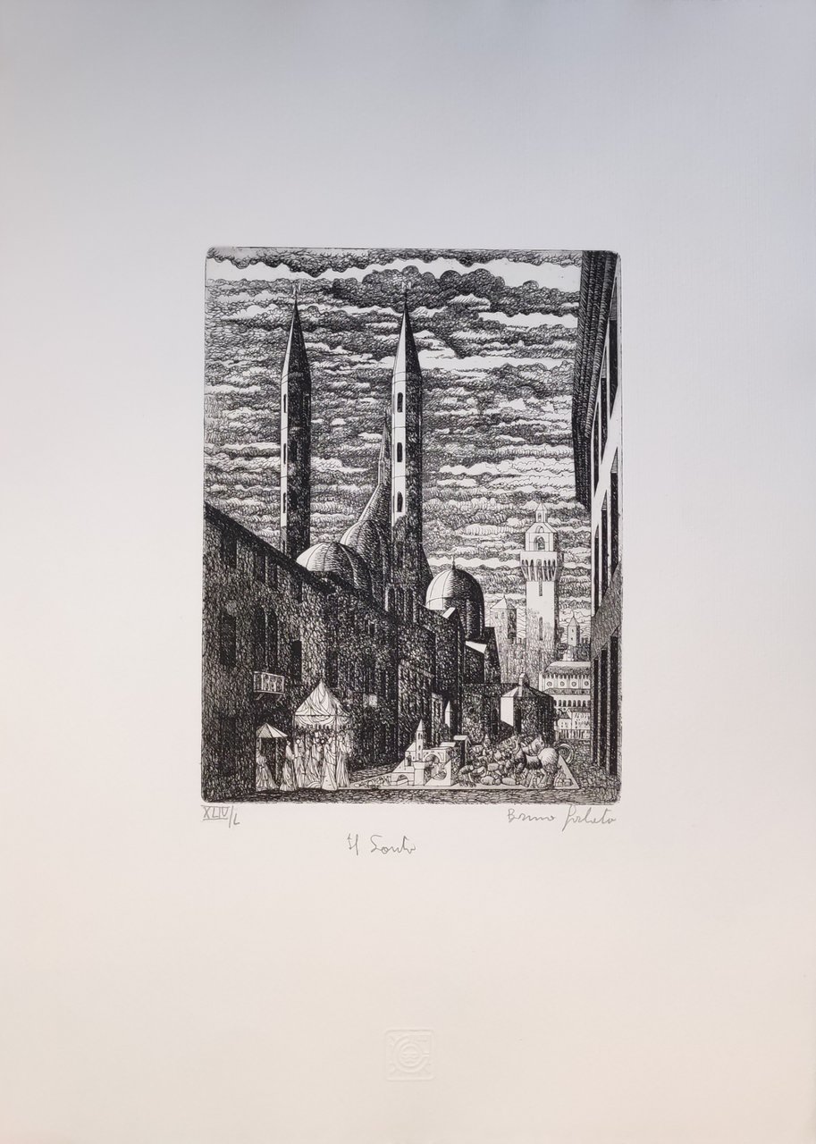 Tiratura XLIV/L. Timbro a secco in basso al centro. acquaforte inciso cm. 17,7 x 23,8 - foglio cm. 34,8 x 49,7 Buono (Good) Buon es..