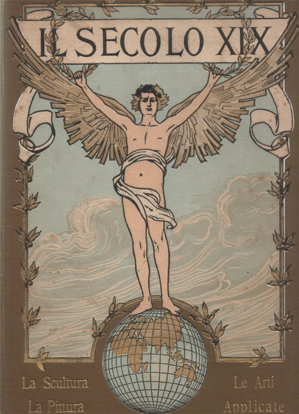In-4°, pp. VIII, 520, legatura editoriale illustrata con normali tracce d'uso. Con 400 figure nel testo e 14 tavole fuori testo. Alla carta che ospita le pagine 39-40, nel margine bianco esterno, strappetto risarcito da intervento di restauro. Per il resto, ottimo esemplare. Dall'indice: La scultura. Proemio. Le fonti: libri, periodici, fotografie, esposizioni; La scultura di fronte alle altre arti; I tre periodi del secolo. Capitolo I. Indole della scultura nel secolo XVIII; La grande reazione classica; I predecessori immediati e i principali contemporanei dell'Houdon; Jean Antoine Houdon. Capitolo II. John Flaxman; Il classicismo ne' vari paesi. Capitolo III. Antonio Canova; Capitolo IV. Thorwaldsen e i maggiori contemporanei scultori italiani e stranieri. Capitolo V. La scultura tedesca: Rauch e i suoi predecessori; Capitolo VI. Lorenzo Bartolini e i Toscani minori; CapitoloVII. P. David d'Angers e F. Rude; Capitolo VIII. F. Chantrey; Westmacott, Wyatt; Macdovell e altri minori artisti inglesi; Gibson e la statue a colori; Il ginevrino J. Pradier; Capitolo IX. La storia e l'autobiografia di Giovanni Duprè; Vincenzo Vela. Capitolo X. La scultura Cinese e Giapponese; Capitolo XI. Scultori italiani contemporanei. Capitolo XII. I contemporanei. Scultori francesi. Scultori tedeschi. Scultori inglesi e americani. Scultori belgi. Scultori spagnoli, slavi ecc. Epilogo. La pittura. Prologo. La pittura nel secolo XIX. Disegno di questo lavoro; Una sola battaglia estetica in tutto un secolo; Rousseau, Goya e il loro individualismo lirico. I. I neoclassici: Germania e Francia; David a Roma e l'orgoglio del Battoni; I ritratti; La contraddizione dell'arte rivoluzionaria. Italia. I romani e la romanità del neoclassicismo; Camuccini in San Pietro e al Pantheon; Suo trionfo in Francia; L'impero del Landi; Il Benvenuti a Firenze e l'ottimismo del Fossombroni; Luigi Sabatelli e la "Peste di Firenze"; Milano e Napoleone; Andrea Appiani e "l'Apoteosi napoleonica"; Giuliano Traballesi; II. Puristi e prerafaeliti; Germania, Italia, Inghilterra. Carattere dei Puristi tedeschi; I principali tra loro; Gli affreschi di casa Bartholdy; L'attività di Cornelius in Germania; Pittori italiani che risentono del Purismo; Il prerafaelismo e i suoi caratteri; Dante Gabriele Rossetti; I quadri più notevoli di Hunt, Millais, Brown, Burne Jones; Il paesaggio dei prerafaeliti; III. Francia. Eugenio Delacroix e la pittura romantica; G. D. Ingres e un'altra forma di classicismo; Puvis de Chavannes e la pittura decorativa; Verso il verismo; Courbet; Italia. I nostri primi romantici continuano l'accademia; La pittura storica dal fiorentino Bezzuoli all'anconitano Podesti; Francesco Hayez; Domenico Morelli; Carattere del quadro di genere dalle pagine veneziane di Giacomo Favretto ai racconti orientali di Alberto Pasini. Spagna. I Davidiani di Spagna. Gli altri paesi d'Europa. Inghilterra. Belgio. I Davidiani; Gli storici impersonati da Wappers; Olanda. La pittura verista e Joseph Israels; Germania. La prima pittura storica da Kaulbach a Piloty, a Makart; Austria. Rahl e la pittura accademica; Ungheria. la pittura ungherese: Munckacsy e Laszlò. Russia. Accenno alle sorti della pittura in Russia. Svezia e Norvegia. I caratteri dell'arte nordica; IV. I romantici e la sincerità. L'evoluzione della pittura di paese. Inghilterra. Il paesaggio romantico intorno al 1820; Francia. la scuola del trenta; Italia. Fontanesi in Piemonte; Palizzi nel Mezzogiorno; I macchiaioli in Toscana; Più notevoli paesisti di ogni regione italiana; Breve accenno ai paesisti inglesi, tedeschi, olandesi, russi. V. La ricerca della luce. L'idealismo moderno. Gli impressionisti francesi da Manet agli ultimi; Wistler e gli americani; Gli scozzesi; L'idealismo moderno; Tendenze idealistiche; I campioni dell'idealismo; Arnoldo Böcklin; La "Secessione" in Germania ed Austria: suo contenuto e suoi aspetti. Italia. Tranquillo Cremona; Giovanni Segantini. Il mobilio d'arte. Le stampe e l'arte. Uno sguardo al secolo XVIII: Il Piranesi. La scuola francese; Chodowiecki; Hogarth e Woollet; I. Il secolo XIX. Italia. Raffaello Morghen e altri incisori italiani; L'invenzione della litografia; I grandi francesi; L'epopea napoleonica; I caricaturisti: Gavarni; Daumier; II. Carattere della stampa d'arte inglese verso il 1840; il keepsake; L'incisione in Francia alla metà del secolo; La stampa artistica giapponese: sue origini, le varie fasi dello studio in Europa; Utamaro. Hokusai, la Mangua; I giornali illustrati; Qualche illustratore di giornali e di libri: Gustav Doré; Bertall; I libri per bambini; III. La stampa d'arte alla fine dell'Ottocento. Cultori della stampa in Italia. IV. I manifesti illustrati. L'arte della strada; I manifesti illustrati; Origini francesi del manifesto; Più notevoli cartellonisti francesi: da Chéret creatore della forma a Grasset, a Carloz Schwabe; L'arte del cartellone in Italia: Ferraguti, Mataloni. Hochenstein e altri disegnatori e pittori; Principali manifesti pubblicati prima del Novecento; L'evoluzione del manifesto illustrato in Inghilterra: principali artisti di questo ramo, Dudley, Hardy, Beardsley, Beggarstaff; Il cartellone artistico americano; La Germania e i Plakaten artistici; Il manifesto illustrato in Austria; Mucha; I cartellonisti del Belgio, della Scandinavia.