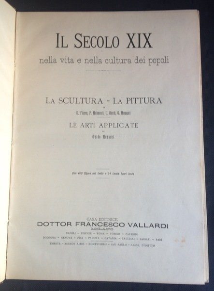 Il Secolo XIX nella vita e nella cultura dei popoli: LA SCULTURA - LA PITTURA - LE ARTI APPLICATE.