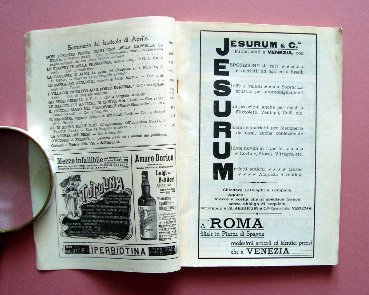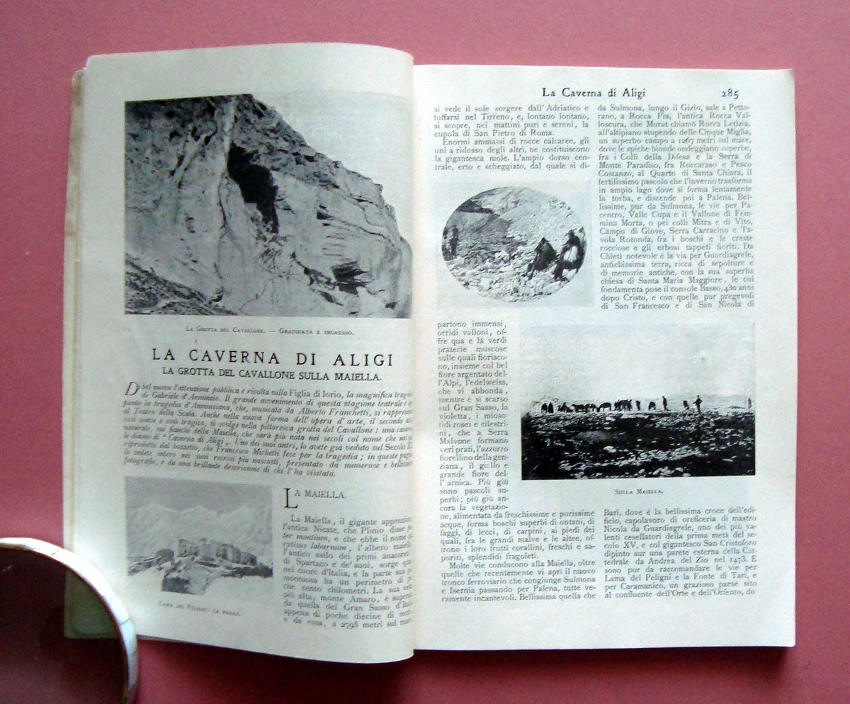 Mensile, Il secolo XX" Rivista Popolare Illustrata Anno V N. 4 Aprile 1906 "La Caverna di Aligi" La Grotta del Cavallone sulla Maiella S.A.Fratelli Treves Ed, Milano, 1906, cm. 24x17, pag. da 267 a pag 352+8 (La storia del mese), numerose ill. in b/n nel. t. e fuori. t., alcune inserzioni pubblicitarie d'epoca in b/n in apertura di testo; brossura ed. Copertina ill. Titolo al dorso. Numero completo e compatto. Condizioni di conservazione Esemplare in buone condizioni con tracce d'uso e del tempo; margini delle br. con macchiette e minuscoli strappetti; interni buoni. "La Caverna di Aligi" di F. Rizzatti pp 10 di testo con 21 illustrazioni fotografiche in bianco e nero Numero completo. RVS001N00648 blu "