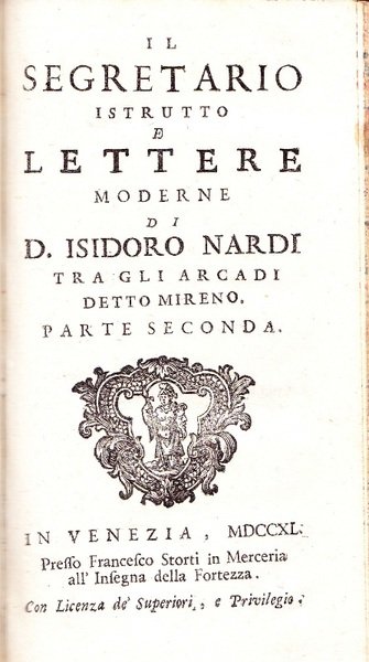 Il Segretario principiante ed istruito. Lettere moderne.col Titolo, Formole di Patenti, di Spedizioni, con aggiunta di Lettere Mercantili cavate da altro Autore