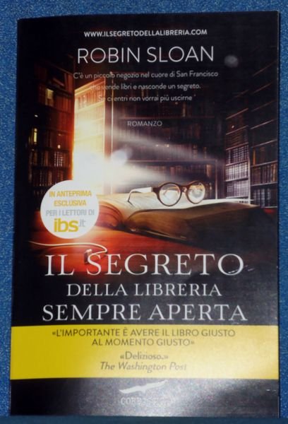 [Romanzo Libreria](cm. 21.5) Brossura editoriale, -pp.306. Edizione in anteprima esclusiva per i lettori IBS. La Grande Crisi ha centrifugato Clay Jannon fuori dalla sua vita di rampante web designer di San Francisco, e la sua innata curiosit‡, la sua abilit‡ ad arrampicarsi come una scimmia su per le scale, nonchÈ una fortuita coincidenza l'hanno fatto atterrare sulla soglia di una strana libreria, dove viene immediatamente assunto per il turno di notte. Clay si rende conto che la libreria Ë davvero molto strana. I clienti sono pochi, ma tornano in continuazione e soprattutto non comprano mai nulla: si limitano a prendere in prestito antichi volumi collocati su scaffali quasi irraggiungibili. E evidente che il negozio Ë solo una copertura per qualche attivit‡ misteriosa. Clay si butta a capofitto nell'analisi degli strani comportamenti degli avventori e coinvolge in questa ricerca tutti i suoi amici. Potr‡ la tecnologia aiutarli nell'impresa? perfetto. [n23]