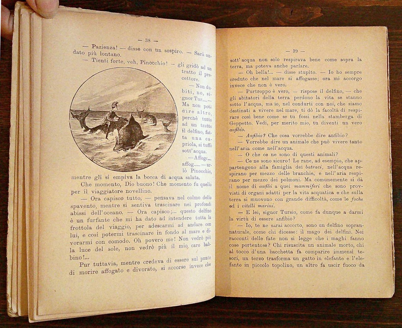 Il segreto di Pinocchio, Viaggio ignorato del celebre burattino del Collodi. Collana Biblioteca Bemporad per i Ragazzi N.59. 73 illustrazioni in b/n di Giuseppe Magni e nuova copertina di Roberto Sgrilli. Ed. Bemporad & Figlio - Firenze, 1930. Cartonato editoriale con dorso in tela originale. Lieve brunitura alla cerniera interna ai risguardi. Interno freschissimo e pulito. 13x19; pp.302. Raro e in Buonissimo stato. , Molto buono (Very Good)