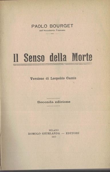 P. Bourget, Il senso della morte. Versione di Leopoldo Cassis
