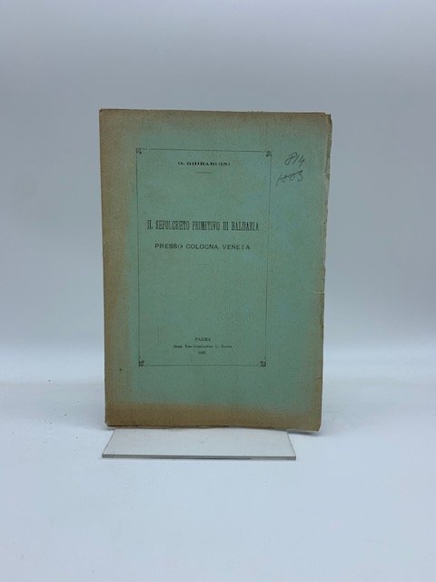 In 8. cm 17,5 x 25, pp. 28. Brossura editoriale. Estratto dal Bullettino di Paleoetnologia italiana. Studio ed esposizione dei materiali archeologici rinvenuti nel territorio di Baldariain occasione degli scavi effettuati nel 1892 per la realizzazione di un nuovo alveo del fiume Gua'