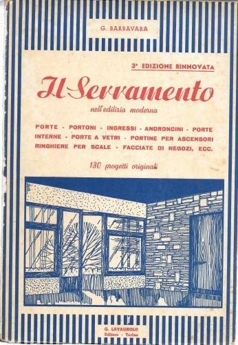 in 8°, pp. 4, 130 tavv., 4; bross. edit. ill.; 130 tavv. di progetti originali di porte, portoni, ingressi, porte a vetri, ringhiere per scale, facciate di negozi etc. 225/37