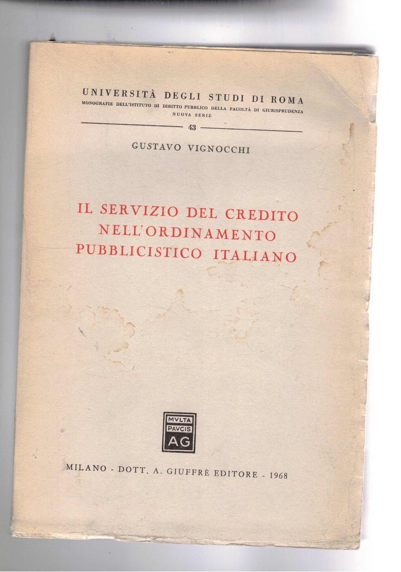 Il servizio di credito nell'ordinamento pubblicistico italiano.