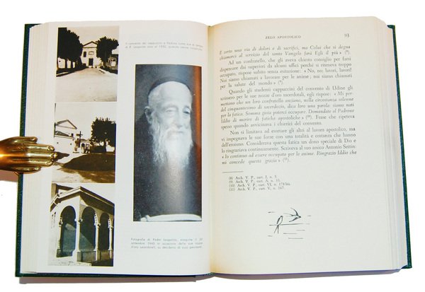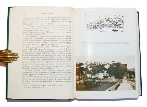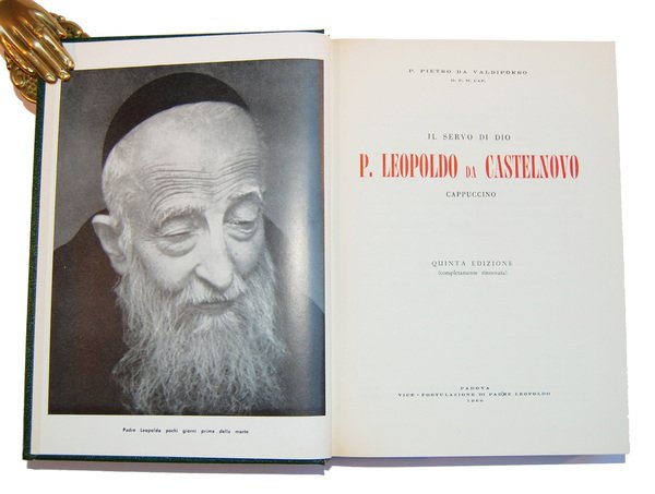 Un volume, 212x150 mm; leg. ed. rigida in percalina verde con dorso a cinque nervi, scritte e fregi in oro al piatto e al dorso, custodia rigida rivestita in carta fintapelle; pp. XIX, 526; 61 tavv. di illustrazioni in b/n f.t. Quinta edizione di questa biografia illustrata di san Leopoldo da Castelnuovo a cura di Padre Pietro da Valdiporro; opera interessante anche per la storia locale, sia per i riferimenti inseriti nel testo e sia per le illustrazioni su Castelnuovo di Cattaro (località che si trova in Croazia). Leopoldo da Castelnuovo, al secolo Bogdan Ivan Mandi? (Castelnuovo di Cattaro, 12 maggio 1866 – Padova, 30 luglio 1942), è stato un religioso e presbitero croato dell'Ordine dei frati minori cappuccini; nel 1983 è stato proclamato santo da papa Giovanni Paolo II. Rif.: IT\ICCU\SBL\0524818 (tre esemplari). Cond.: Opera come nuova, in perfette condizioni. -- FIFTH EDITION OF THIS ILLUSTRATED BIOGRAPHY OF ST. LEOPOLD OF CASTELNUOVO WRITTEN BY FATHER PETER OF VALDIPORRO. Copy almost new, in perfect condition.