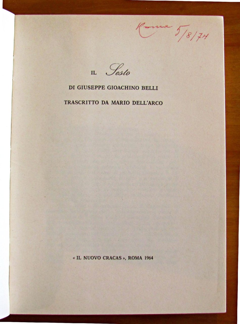 Trascritto da Mario Dell'Arco. Copertina illustrata in sanguigna da Maccari. Il Nuovo Cracas - Roma, 1964. Brossura editoriale con firma di appartenenza al frontespizio. 15x21; pp. non numerate. COME NUOVO , Ottimo (Fine)