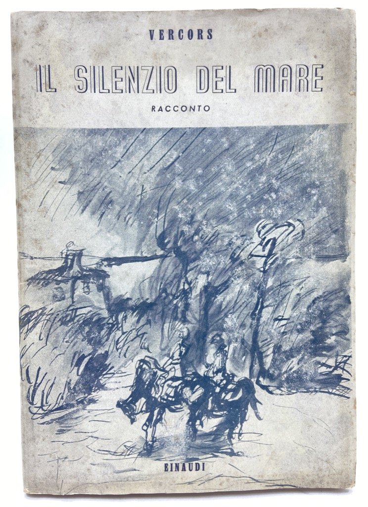 Brossura editoriale con sovraccoperta illustrata, cm 19.5 x 13.5, pp 68 (4). Collana Narratori contemporanei, numero VIII. Lievi fioriture sulle ultime carte, buono stato. Prima edizione italiana di Le Silence de la Mer, romanzo simbolo della Resistenza europea pubblicato clandestinamente nel 1942 come primo titolo delle Éditions du Minuit, la casa editrice fondata da Bruller e Paul Lescure sulle ceneri di La pensée libre, la rivista sulle cui pagine avrebbe dovuto comparire ma che fu chiusa dalla Gestapo. Il racconto è tradotto da Natalia Ginzburg, che in quegli anni affiancava Pavese e Vittorini alle redini della collana Narratori Contemporanei; risvolto di copertina di Giacomo Debenedetti. Il libro venne pubblicato durante la «cattività» romana di Einaudi, mentre la sede torinese della casa editrice era commissariata ed affidata a Paolo Zappa, e come gli altri titoli del periodo ha sovraccoperta stampata in bianco e nero e illustrata da Domenico Purificato.
