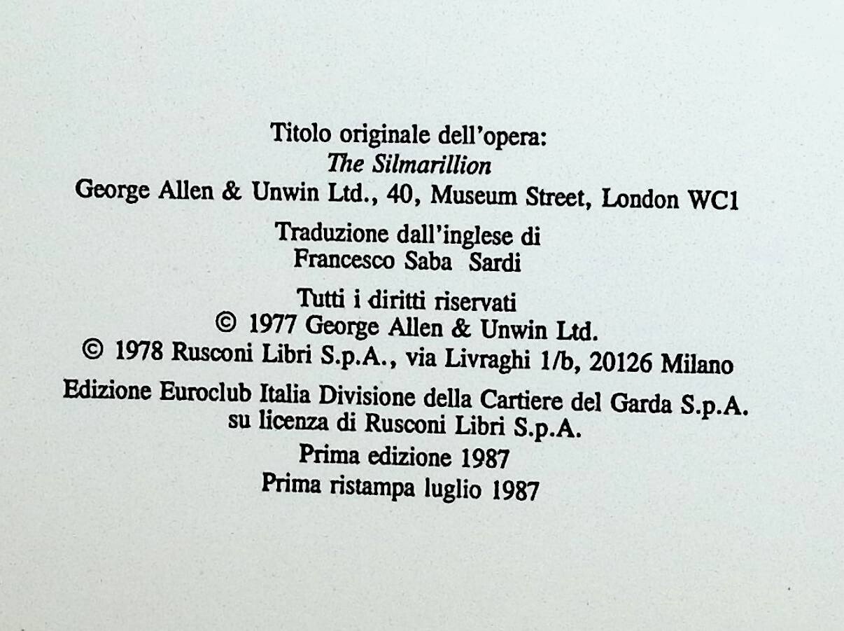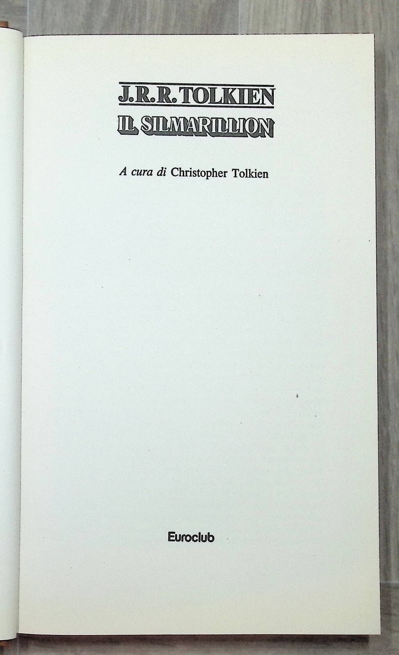 Il Silmarilliondi J.R.R. TolkienEditore: Euroclub Data di Pubblicazione: 1987 Pagine: 452 Formato: rilegato Condizioni del libro Buone condizioni, solo qualche piccolo segno di ingiallimento (vedi foto)
