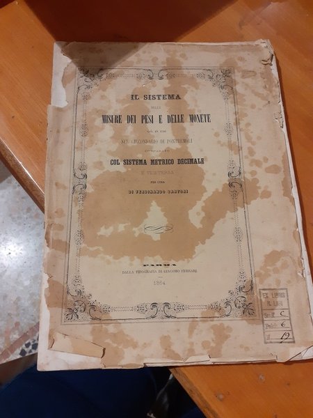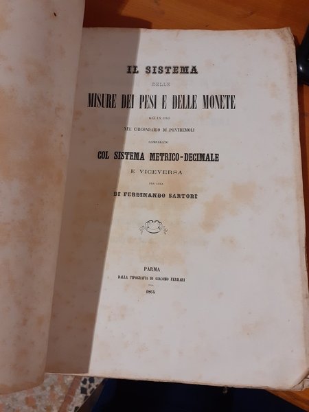 Il sistema delle misure dei pesi e delle monete già in uso nel circondario di Pontremoli comparato col sistema metrico decimale e viceversa