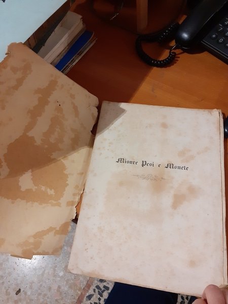 Volume con schede e manifesti riguardanti pesi e monete di Pontremoli.