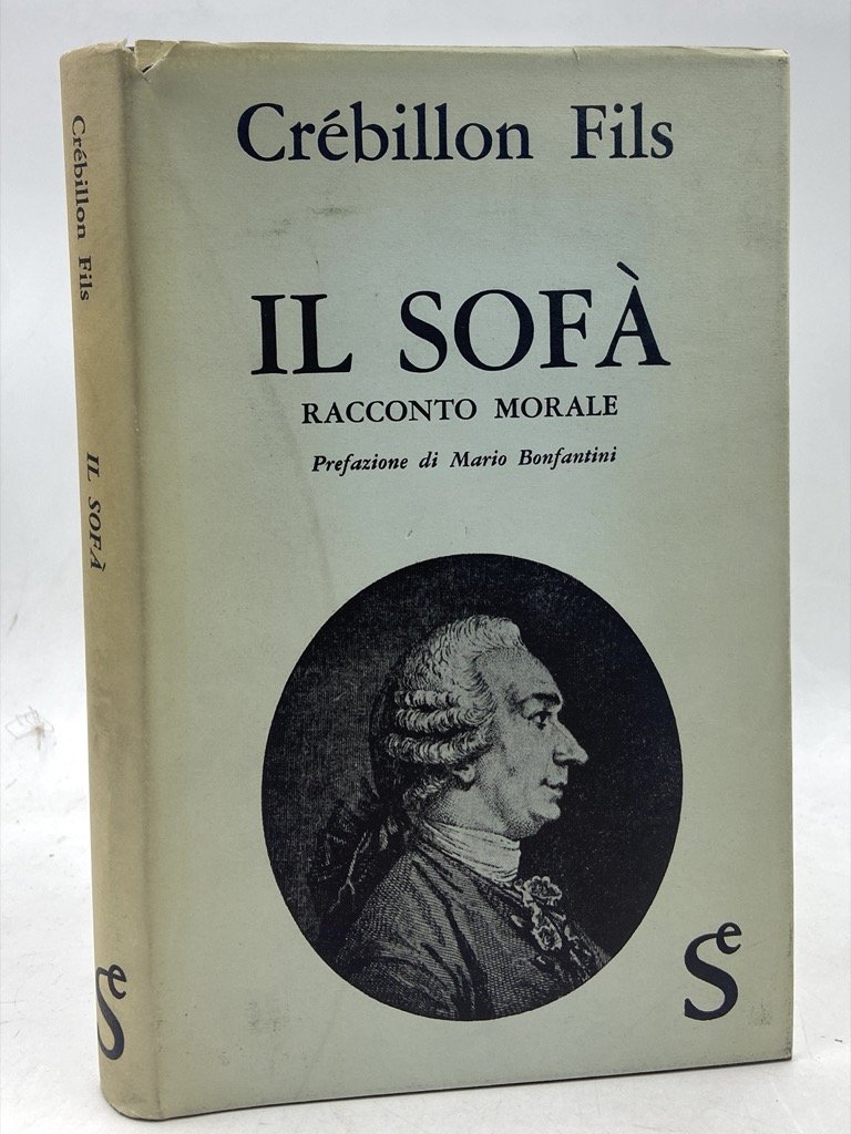 Tela editoriale con sovraccoperta illustrata, cm 21 x 13.5, pp 246 (6). Traduzione di Mary Molino, prefazione Mario Bonfantini. Collezione Olimpo Nero, numero 7. Buono stato. La collana Olimpo Nero delle edizioni di Pietro Sugar pubblicò a partire dal 1963 una preziosa selezione di classici della letteratura gotica, fantastica, erotica e occulta, proposti in un’elegante veste editoriale con sovraccoperta color carta da zucchero e con prefazioni di Piovene, Eco, Macchia. Nel 1965 alla narrativa si affiancò una sezione di saggi dedicati agli stessi argomenti. Il Sofà di Crébillon Fils fu il settimo titolo pubblicato nella collana, a cura di Mario Bonfantini e con traduzione della moglie Mary Molino.