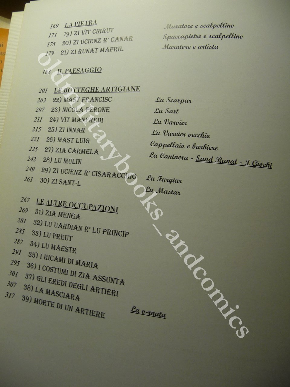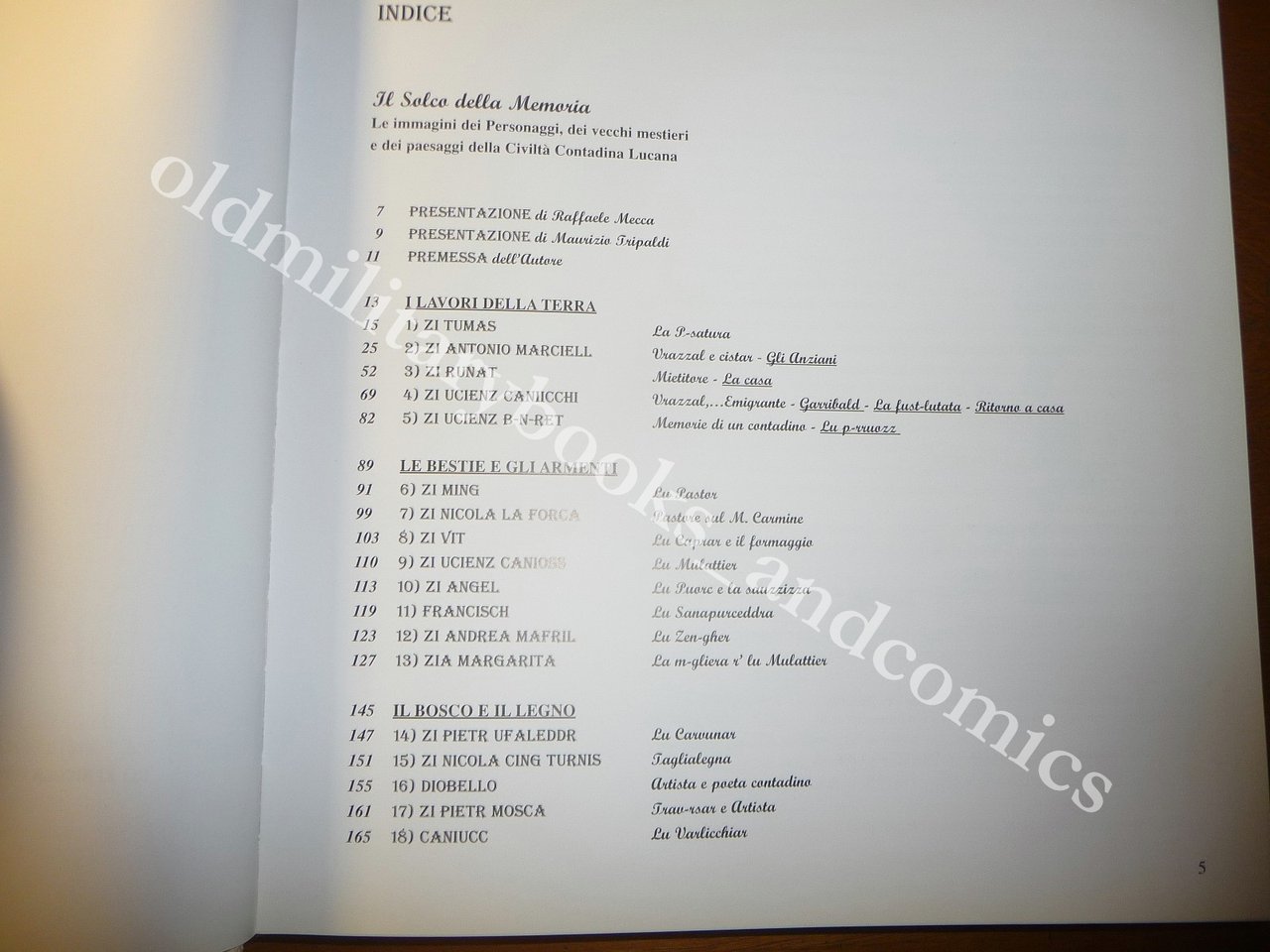 "La storia raccontata dai più semplici: artigiani, contadini, pastori che Domenicantonio Possidente ritrae nelle sue fotografie. Volti e luoghi di una Basilicata antica - sottolinea il Presidente della Provincia di Potenza Vito Santarsiero - umili protagonisti di un passato che rivive nei visi rugosi, nelle mani segnate dai calli, nei vicoli di borghi abbandonati, nelle antiche botteghe del fabbro o dello scarparo, del mugnaio o del sanapurcedd'. Mestieri ormai scomparsi. Evocazioni di arti antiche di un popolo povero ma dalla grande dignità" "Il libro - ha detto Santarsiero - si inserisce nel progetto, portato avanti dalla Provincia di Potenza nel Polo della Cultura, di recupero dell'identità storica e culturale del nostro territorio quale elemento fondante dei processi di sviluppo locale". "Il volume - scrive nella premessa del catalogo Domenicantonio Possidente, fotoamatore - vuol essere un atto d'amore verso le persone più umili, per tutte quelle anonime e modeste persone, tenaci e laboriose, che hanno sempre dato il proprio contributo alla società senza mai ricevere alcun riconoscimento. Una modesta gratificazione all'estro, alla creatività e all'operosità del mondo contadino lucano". Il libro (318 pagine) è diviso in sette sezioni ed alterna fotografie a colori e in bianco e nero a storie e testimonianze di artigiani, contadini, pastori, boscaioli, carbonai ed artisti. La prima sezione è dedicata ai lavori della terra, la seconda alle bestie e agli armenti, la terza al bosco e al legno, la quarta alla pietra, la quinta al paesaggio, la sesta alle botteghe artigiane e la settima alle altre occupazioni.