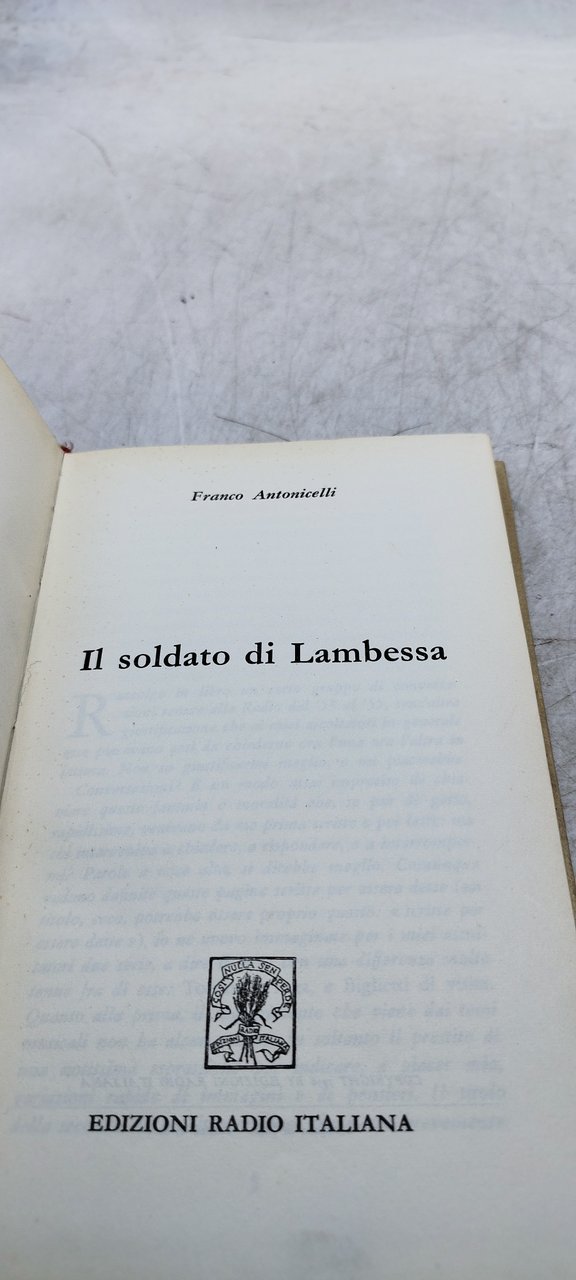 franco antonicelli il soldato di lambessa. , edizioni radio italiana 1956 italiano, 246 °°rilegato