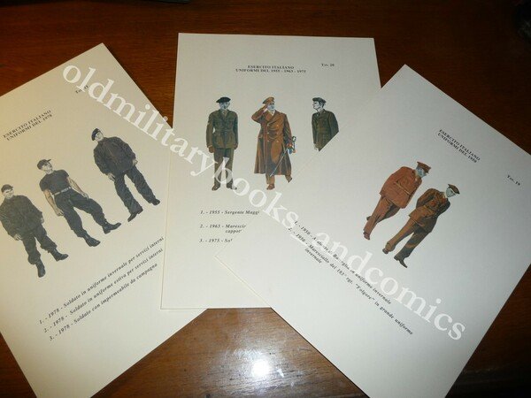 DESCRIZIONE: Rara pubblicazione dello SME, Rivista Militare. Folder in cui vengono riprodotte le uniformi dei Sottufficiali a partire dall'Unità d'Italia fino alla data di stampa. Inoltre una tavola con i gradi, ed alla fine alcune cartoline che riproducono i luoghi in cui la Scuola Allievi Sottufficiali ha peregrinato fino alla definitiva sede di Viterbo. Bella opera che analizza un aspetto a volte trascurato. CONDIZIONI DELL'OGGETTO: Buone, cofanetto un po vissuto con alcune pieghette, e segni di sporco, tavole allo stato di nuovo. PESO/WEIGHT: 395 g without package