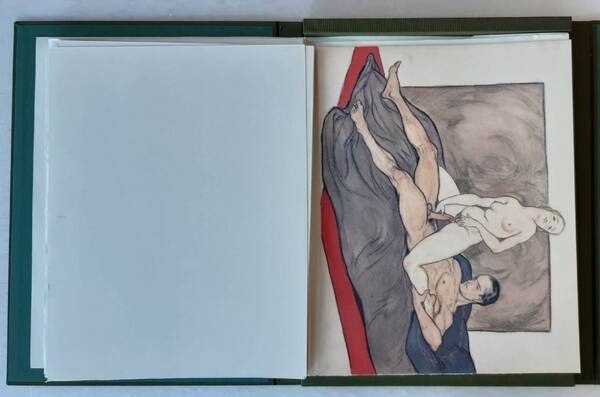 Quarto (34 x 26 cm). 23 p. Dodici tavole sciolte a colori numerate attribuite a Marcello Dudovich. Il volume si presenta a fascicoli sciolti con carta in barbe conservati in cartella avorio con una illustrazione a colori applicata al piatto anteriore, con custodia editoriale in piena tela verde con decorazioni e titoli impressi al dorso e al piatto anteriore, edizione realizzata su carta Hahnemuhle con illustrazioni tirate al torchio in tiratura limitata di 112 esemplari. Volume in perfetto stato.