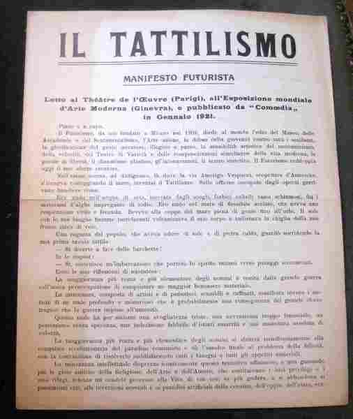 Il Tattilismo. Manifesto Futurista. Letto al Théatre de l'Oeuvre (Parigi), all' Esposizione mondiale d' Arte Moderna (Ginevra), e pubblicato da 'Comoedia' in Gennaio 1921