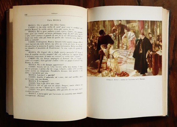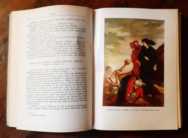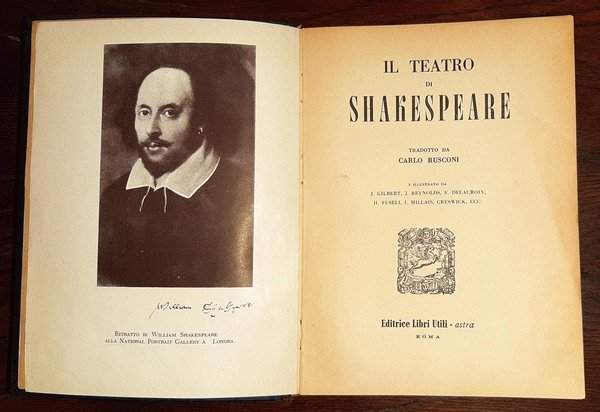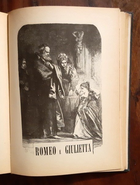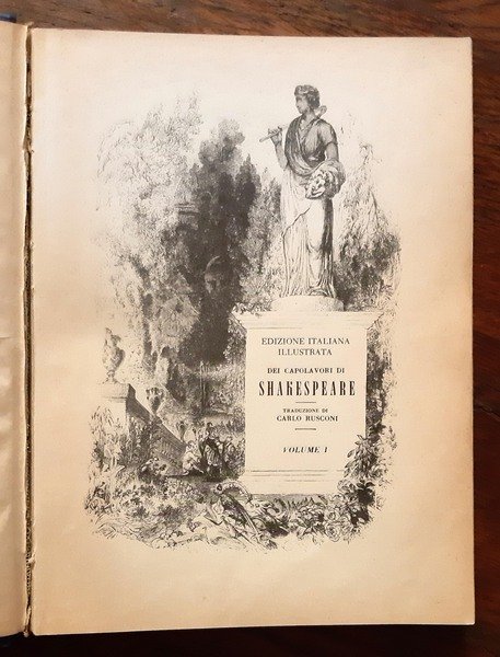 Un volume, cm 21x15,6, leg. editoriale in tela percalina con impressioni dorate al piatto anteriore (firma di Shakespeare) e titolo dorato al dorso; pp. 352, [24] c. di tav.; illustrazioni; solo volume 1 (di 2), contenente: Amleto ; Macbeth ; Otello ; Romeo e Giulietta. Rif.: IT\ICCU\TO0\0832201. Cond.: Leggere tracce d'uso alla legatura (sbiadita). Carte ingiallite. Esemplare in condizioni generali molto buone.
