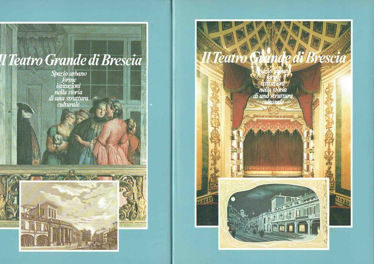 Il Teatro Grande Di Brescia. Spazio urbano forme istituzioni nella storia di una struttura culturale. 2 volumi. Frati Vasco, Boschi Ruggero, Gianfranceschini Ida, Mondini Maurizio, Robecchi Franco e Carlo Zani. Grafo 1985. Cm 31 x 23 x 5. Volumi rilegati in tutta tela bianca con totoli ai fìdorsi. Sovraccoperte illustrate. Pp 229 +266. Riccamente illustrato a colori e in nero. Perfette condizioni