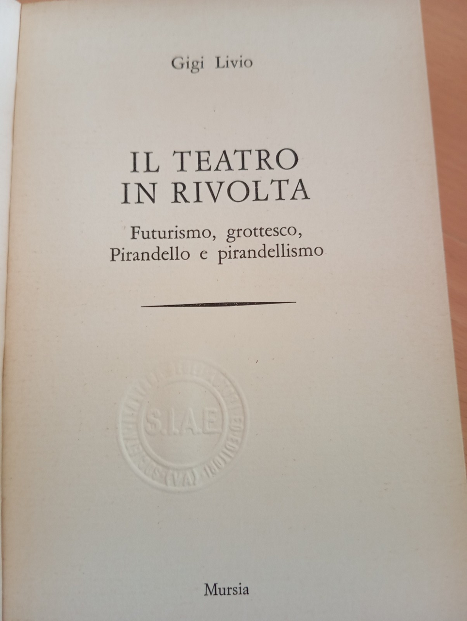 Il teatro in rivolta. Futurismo, grottesco, Pirandello, Gigi Livio, Mursia, 1976