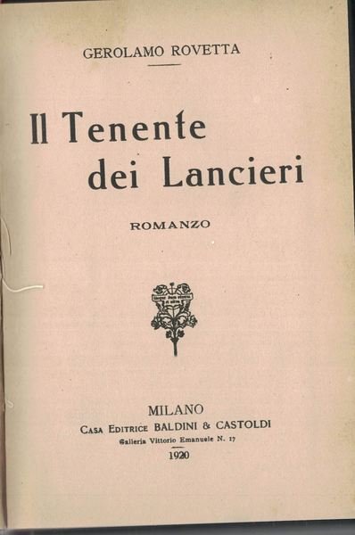 Gerolamo Rovetta; Il tenente dei Lancieri -