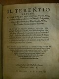 IL TERENTIO LATINO, COMENTATO IN LINGUA TOSCANA E RIDOTTO A LA SUA VERA LATINITA'.DA GIOV. FABRINI DA FIGLINE.IL QUAL COMENTO ESPONE PAROLA PER PAROLA LATINA IN TOSCANO.IN DUO O TRE MODI IL SENSO.NEL FINE E' AGGIUNTO LA INTERPRETAZIONE.