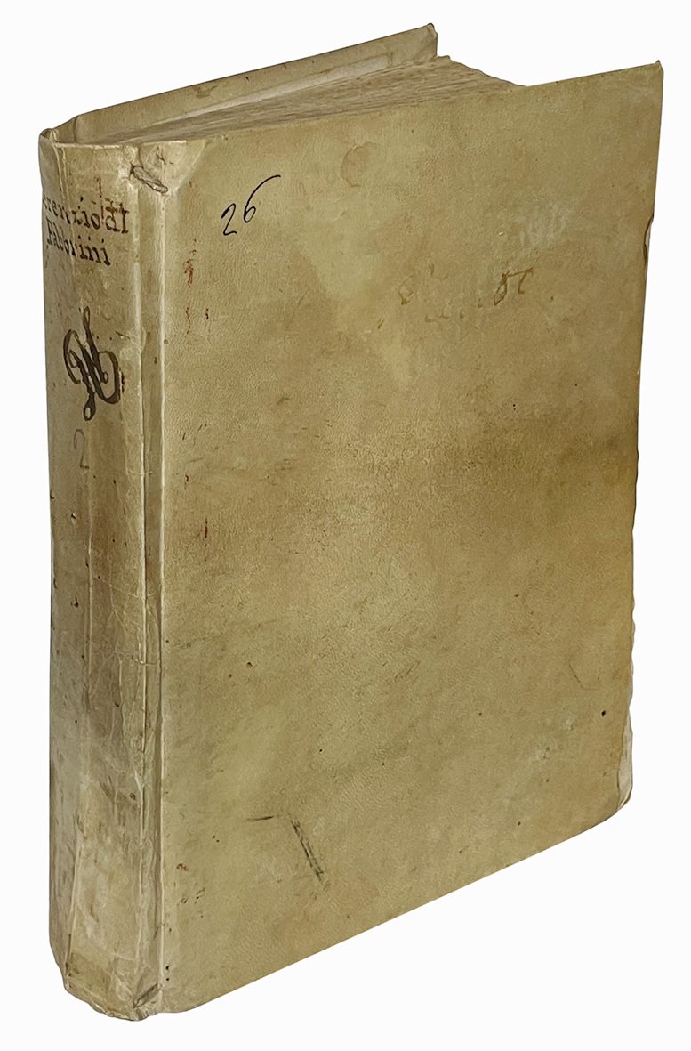 Due parti rilegate insieme in un volume in 4to (mm 210x155); pp. [6], 438, cc. 33, [1], [6], 7-60. Segnatura: A-Qq8 Rr6. Testo stampato su due colonne. Marca editoriale xilografica al frontespizio. Frontalino, iniziali e piccoli fregi silografici. Aloni diffusi, lievi fioriture, alcune carte un po' brunite. Note manoscritte al verso di c. A3; note di possesso, di cui una cassata, al frontespizio. Piena pergamena coeva o di poco posteriore con nome degli autori e piccolo fregio vergati al margine superiore del dorso. Piccole mancanze marginali ai piatti.