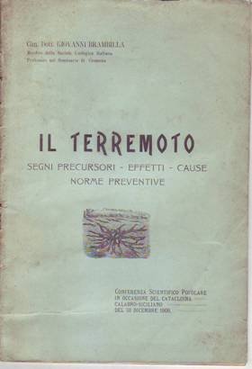 Fascicolo in 8, brossura editoriale, titolo al piatto, 31 pp. Illustrazioni fotografiche e disegni nt. Si tratta della Conferenza Scientifico Popolare in occasione del Cataclisma Calabro - Siciliano del 28 dicembre 1908 tenuta dal Professor Brambilla membro della Societ Geologica Italiana. Interessante e poco comune. In buono stato, mende alla brossura.
