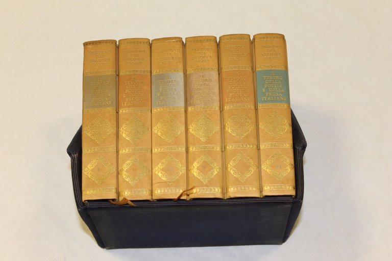 DESCRIZIONE LIBRO 6 voll. in cofanetto, pp. 320 cad., cm. 14x10, cart. scritte e fregi in oro, frontespizi e capi testo..