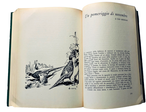 In 4°; 405, (1) pp. e 24 c. di tav. illustrate a colori. Brossura editoriale arancione illustrata con sopraccoperta editriale verde illustrata. Prima ed unica edizione di questo interessante testo di racconti di caccia e tecnica venatoria. Un piccolo strappetto al dorso senza perdita di carta di opera non comune ed in buone-ottime condizioni di conservazione. Fra i racconti: Ricordi di caccia in Sardegna; La lepre del diavolo; Tell: ricordi di caccia in palude; Ricordi di GIacomo Puccini cacciatore e uomo; La Reale tenuta di San Rossore; Stagno; L'arrosto; Nebbia; Tortore; Apologia dell'uccellino; La Martora; Il Magnifico Uccellatore; Il Camoscio d'Abruzzo; Le oche del Tovaliere; L'astore; A caccia nel Chaco argentino; Chianti gradazione 13; Vecchi Archibugi; La Beccaccia di Natale; Il vecchio Capriolo; Starne di Calanco; Lo sparviere e l'averla; Inno al capanno; I miei beccaccini ecc. Prima edizione.