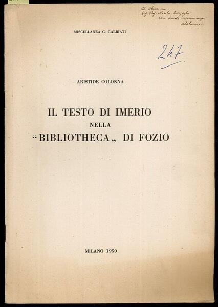 Il testo di Imerio nella "Biblioteca" di Fozio