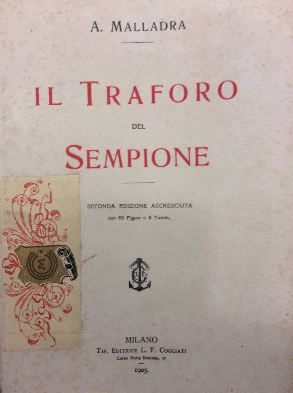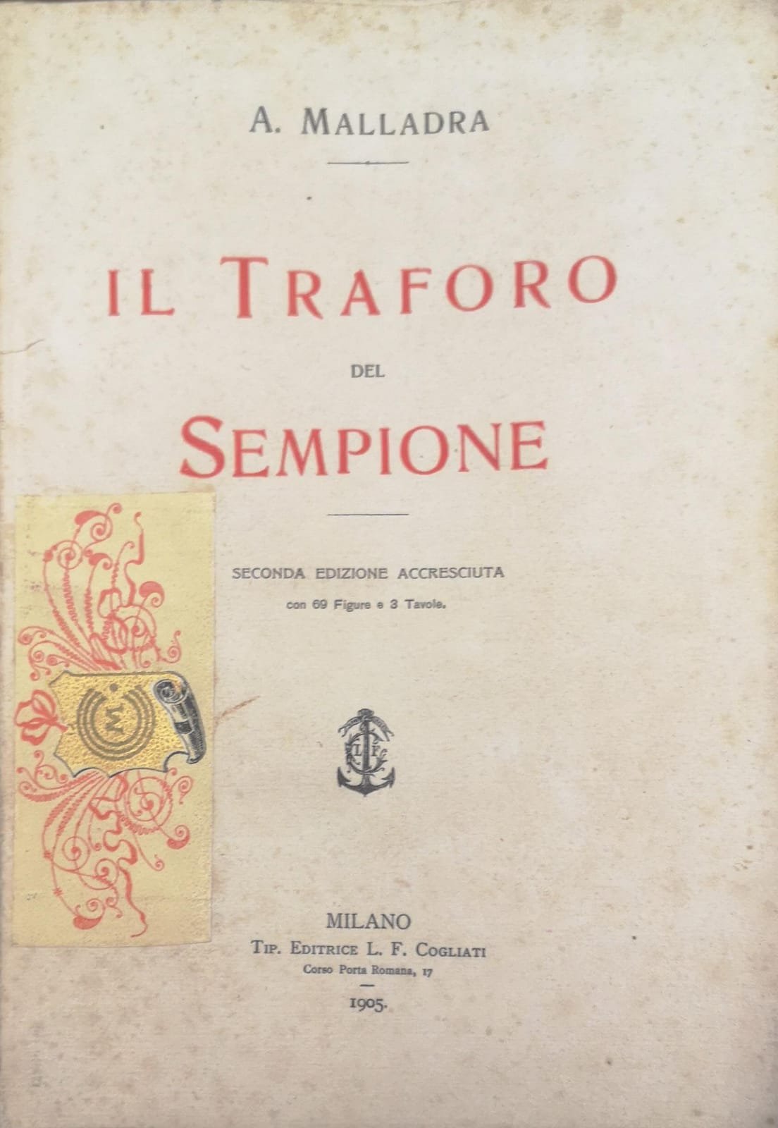 In-8 gr., brossura editoriale (adesivo decorato applicato al piatto e al risg. anteriore; lieviss. fioriture), pp. 151, con 69 figg. nel testo e 3 tavole fuori testo più volte ripieg., in bianco e nero e a colori, che raffigurano Schema degli imbocchi del Traforo del Sempione - Profilo del Sempione secondo l'asse della galleria - Profilo geologico del Traforo del Sempione (rilievo del 1901 secondo il Dott. Schardt). Testo ben conservato.