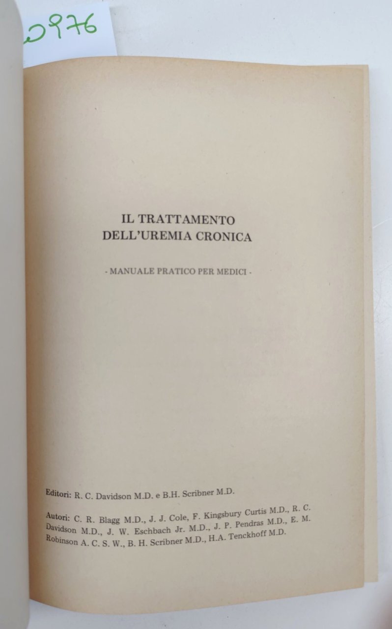 Il trattamento dell'uremia cronica manuale pratico per medici 1971 Eurospital