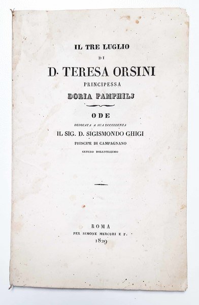 Il tre luglio di D. Teresa Orsini Principessa Doria Pamphilj. Ode dedicata a Sua Eccellenza il Sig. D. Sigismondo Ghigi Principe di Campagnano genero dolentissimo.