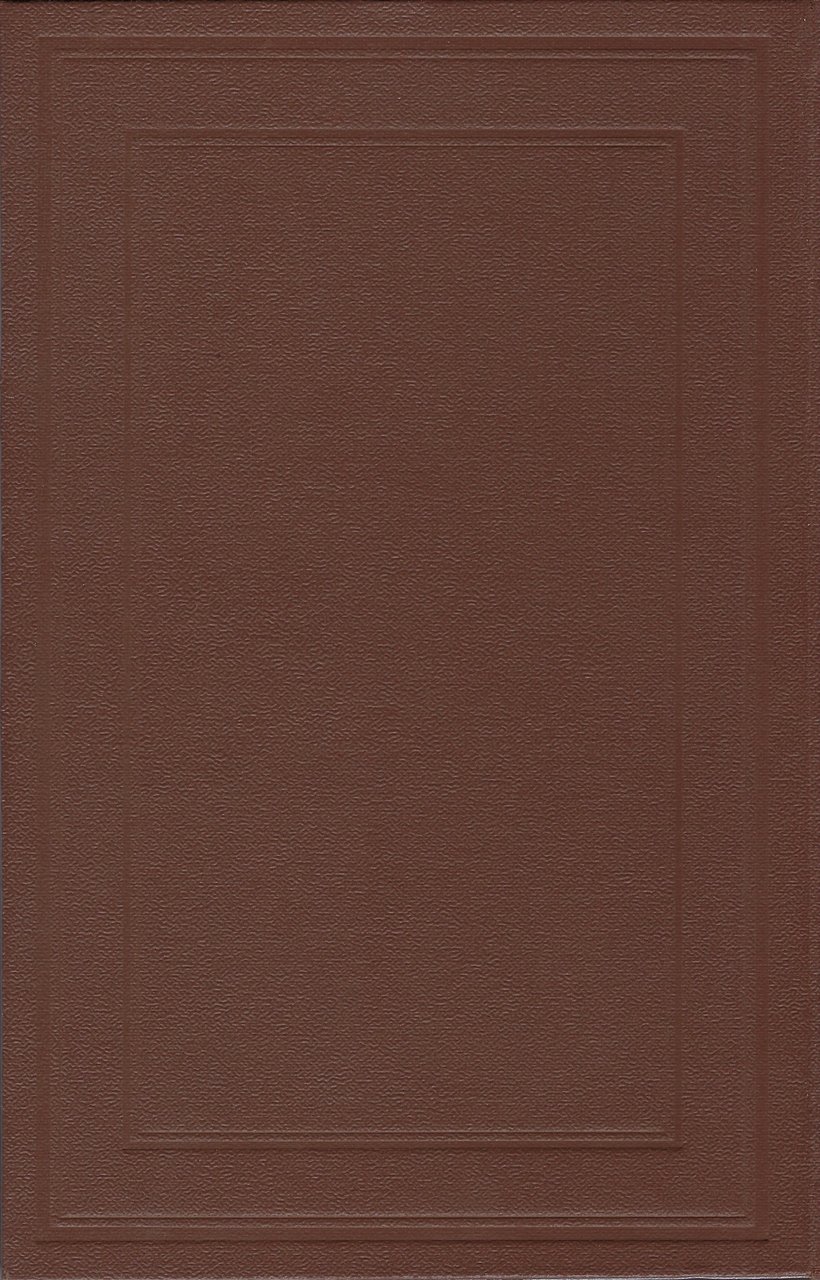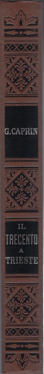 Legatura editoriale rigida marrone con decorazioni e titoli dorati al piatto anteriore e al dorso.