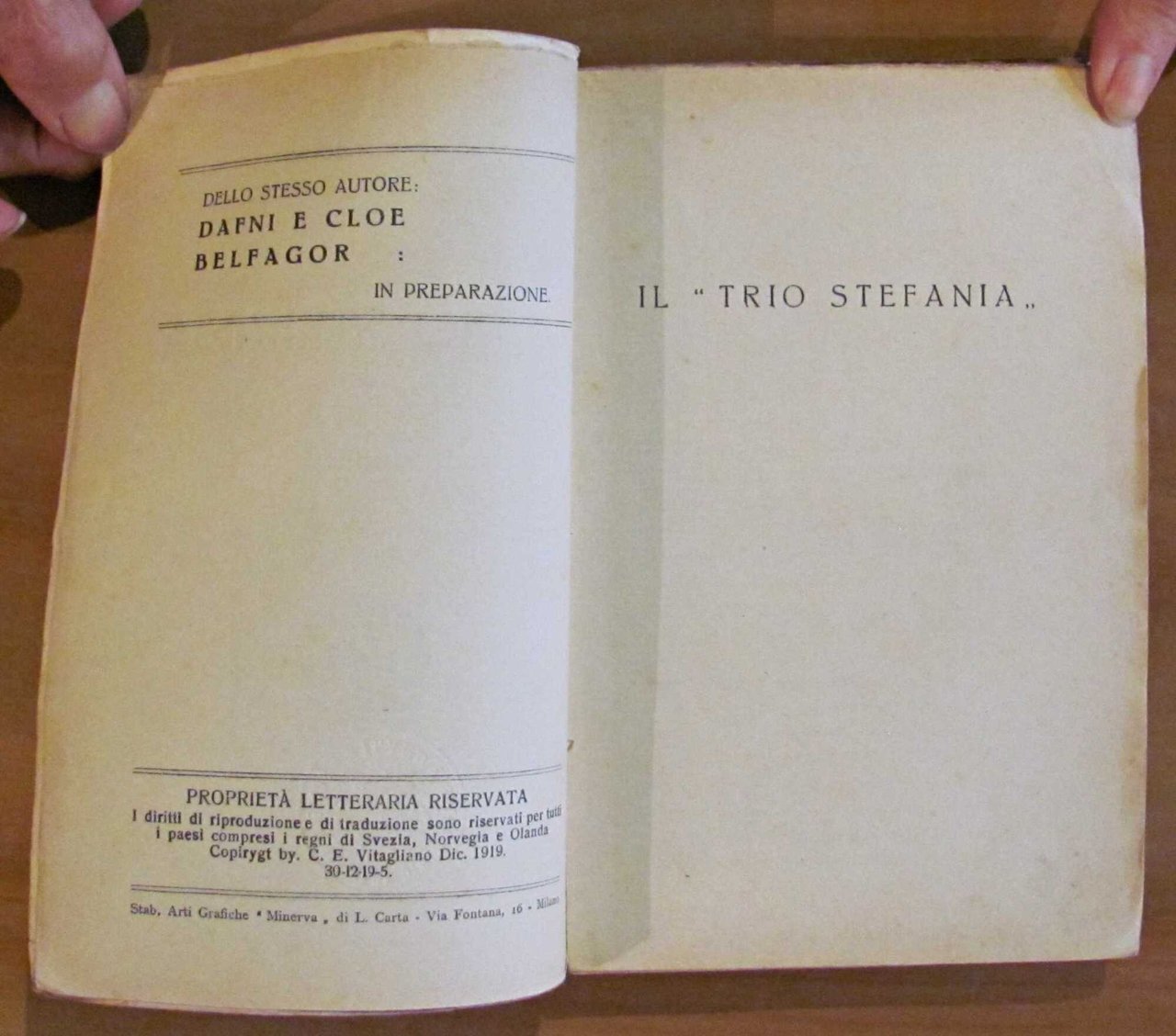 Ed. Vitagliano - Milano, 1919. Brossura editoriale con piccolissima mancanza alla cuffia inferiore del dorso e leggero timbro al piatto. Firma di vecchia appartenenza in antiporta. Peraltro libro freschissimo e pulito. 13x19; pp.236. Buonissimo stato. , Molto buono (Very Good)