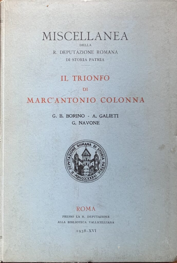 Collana Miscellanea della Regia Deputazione Romana di Storia Patria.