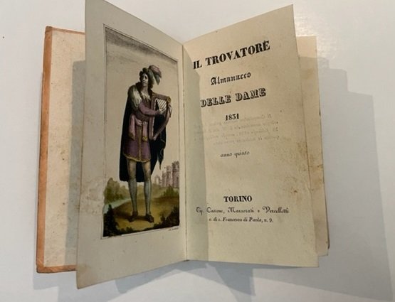 In 24 (cm 8,5 x 13,5 circa), pp. 138 + (2) con 1 tavola incisa all'antiporta in litografia colorata a mano. Cartonatura coeva. Almanacco letterario con versi e prose. Fra gli autori figurano Diodata Saluzzo Roero con "Il Canto del Trovatore"; "A Carlo Denina", i sonetti "L'amor del luogo natio", "La fanciullezza"; La Gioventu'", "La vecchiaia". Fra gli altri autori: Cesare Oliveri, Saverio Bettinelli, Clementino Vannetti, Celestino Massucco con il sonetto "La morte di Abele", Vincenzo Monti, Giuseppe Parini. Compaiono inoltre "Ritratti d'alcuni suoi amici illustri" di Silvia Curtoni Verza, detta in Arcadia Flaminda Caritea; sempre di una poetessa arcade, Paolina Secco Soardi Grismondi, in arte Lesbia Cidonia, compaiono "Terzine a Palide Lidio" e "Per la morte di Gerolamo Pompei".