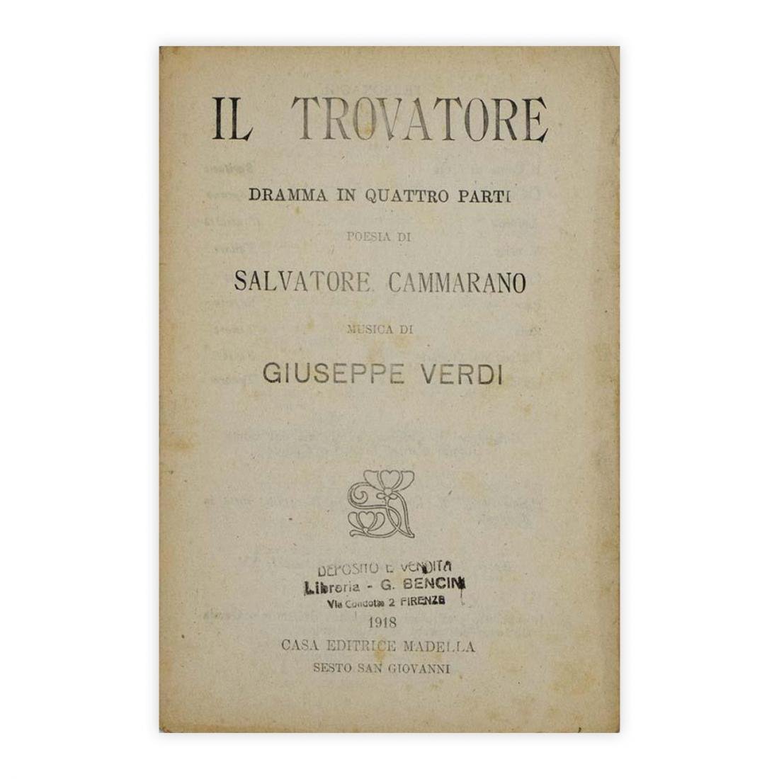 Autore: Salvatore Cammarano Titolo: Il trovatore Edizione: Casa Editrice Madella 1918 Dimensioni: 12,5 x 18 cm c.a. Pagine: 32, Peso: 0,018 kg Copertina: Brossura Sovracoperta assente Buone condizioni come da immagini
