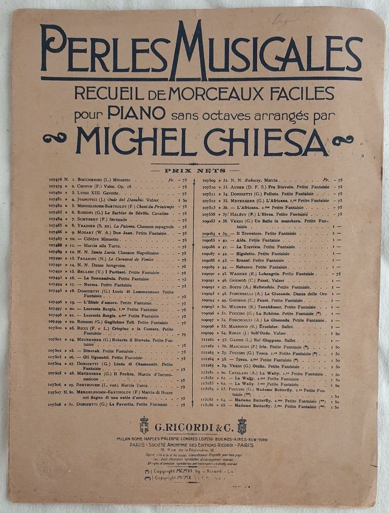 Spartito del novembre 1921 della melodia "Petite fantaisie" tratta da Il Trovatore di Giuseppe Verdi.<BR>Timbro a secco datato novembre 1921. In buone condizioni con fioriture e strappi marginali Legatura in buone condizioni. Formato cm. 34x25,5. Pp. 3. Musical score of november 1921 of the piece "Petite fantaisie" taken from Il Trovatore by Giuseppe Verdi. Embossed stamp dated november 1921. In good condittions with foxings and tears in the edges. Binding in good conditions. Size cm. 34x25,5. Pp. 3.