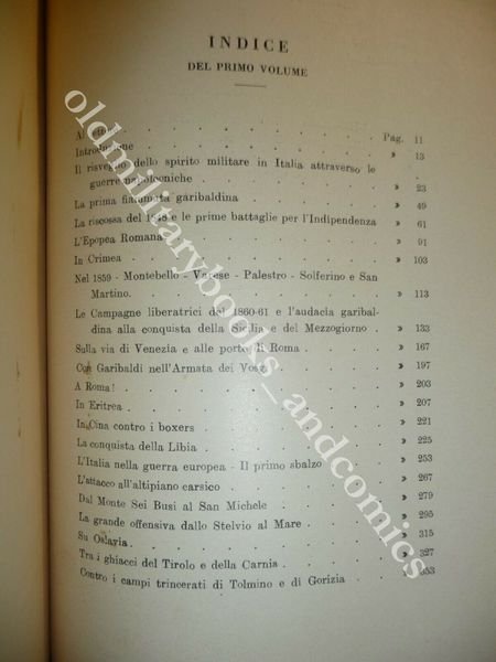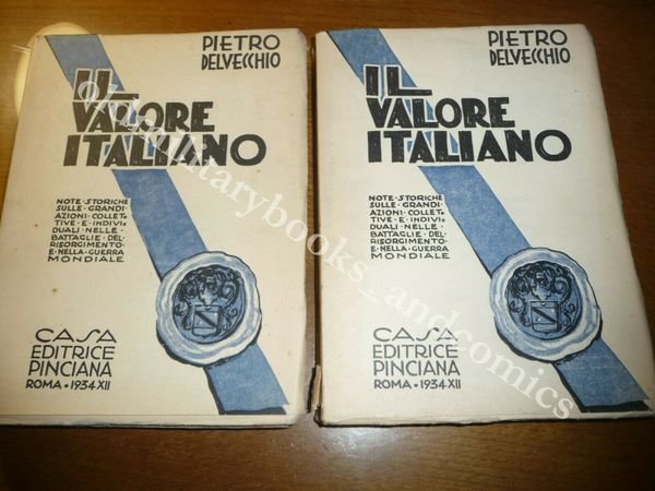 TITOLO: IL VALORE ITALIANO VOL.I II NOTE STORICHE SULLE GRANDI AZIONI COLLETTIVE E INDIVIDUALI NELLE BATTAGLIE DEL RISORGIMENTO E NELLA GUERRA MONDIALE DESCRIZIONE: Casa Editrice Pinciana Roma 1934 br. ed. con sovracc. ill. 2 voll. pp. 462+437 con 13 tavv. f.t. in 8°. Note storiche sulle grandi azioni collettive ed individuali dalle battaglie del Risorgimento alla Guerra Mondiale. Contiene: Guerre napoleoniche, garibaldine, guerre d'Indipendenza, ERITREA, CINA contro i boxers, LIBIA, Grande Guerra fino alla Strafexpedition, conquista di Gorizia, battaglia del Faiti. CONDIZIONI: Ottime/Perfette, volumi INTONSI. Piccola rottura alla sovracc. del primo vol. PESO / WEIGHT: 1773 gr. without package