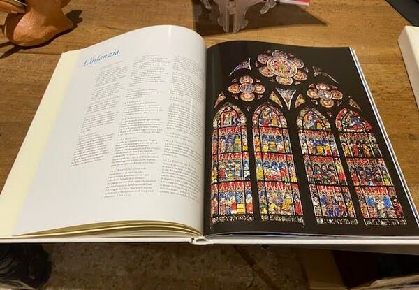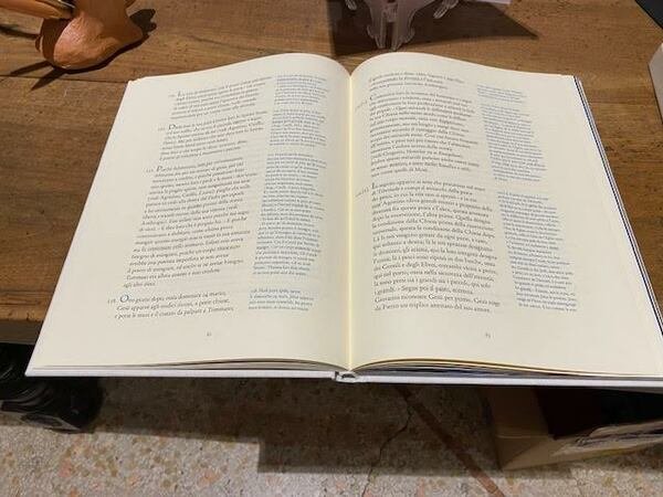 Volume dalla copertina rigida chiara tenuto in ottime condizioni. Pagine bianche, senza segni di danneggiamento. Sul fronte e sulla costa, il titolo è inciso in caratteri dorati. La seconda parte del volume è interamente dedicata a fotografie di tavole colorate realizzate da Massimo Listri. Protetto da un cofanetto un po' sporco a causa del tempo.
